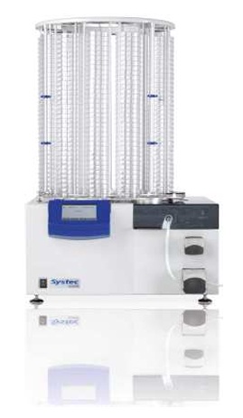 【概要】 OSK 50TM200 Systec Mediafill は、直径 35/60/70/90 mm のペトリ皿に対応し、220/440/660 枚のスタッカー構成を選択できる自動培地分注装置です。内蔵ペリスタポンプによる無菌分注、DropStop・ポンプバック機能、添加剤ポンプや試験管充填ユニットなどの拡張性を備え、微生物検査や品質管理における大量処理を効率化します。 【特徴】 ・220/440/660 枚のペトリ皿に対応 ・直径 35~90 mm の皿に自動分注 ・内蔵ペリスタポンプによる無菌・高精度分注 ・添加剤ポンプを追加可能(メインポンプと同期) ・ショットスイッチ/ペダルによる手動分注 ・バイプレート/トリプレート対応(オプション) ・試験管充填に変換可能(直径 13~31 mm、最大 4 ラック) ・DropStop 機能で滴下防止 ・ポンプバック機能でチューブ内ゲル化防止 ・プリンター(皿側面印字)・メーター(サイクル完了通知)対応 【仕様】 Mediafill 本体の寸法は 683×662×348 mm、重量は 37.5 kg。 スタッカーは 220/440/660 の 3 種類で、高さは 730/1094/1444 mm、最大積重高さは 345/682/1030 mm。 対応ペトリ皿は直径 90 mm、高さ 12~26 mm。 スタッカー重量は 6.9/9/14.3 kg。 添加剤ポンプは 0.5 kg、ベルトコンベアは 1.7 kg。 電源は 100~240V(50/60Hz)、インターフェイスは RS‑485、UV ランプは 2.3W(254 nm)。
