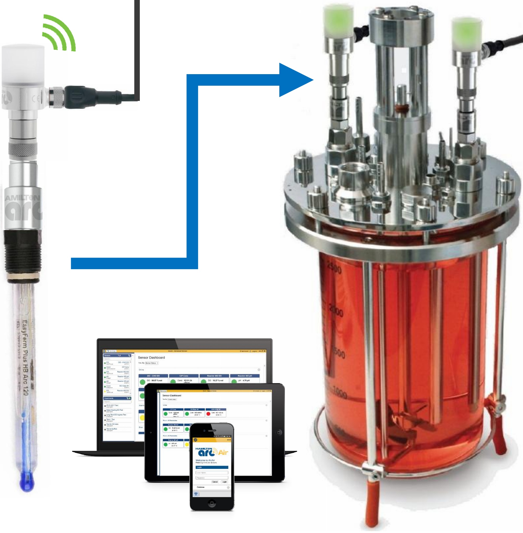 ハミルトン社製Arcセンサーシリーズは,センサー本体にトランスミッター機能を搭載(アナログ4-20mA出力とデジタルRS-485出力が可能)したデジタルセンサーです。