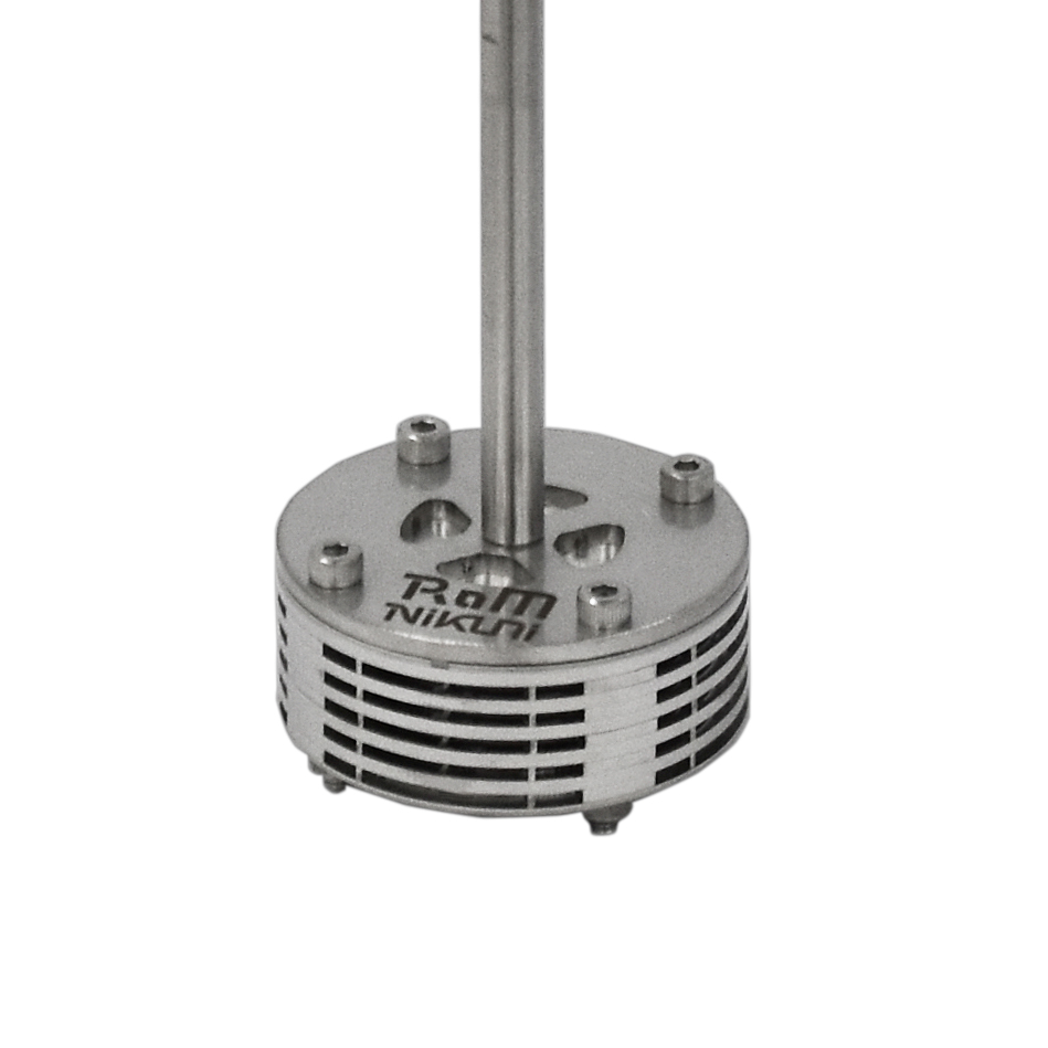 MSE型攪拌翼RaMは他の攪拌翼と異なり、かき回す翼が無く、遠心力によって混合をおこないます。2種類の異なる形状の混合エレメントが積層されており、積層方向と半径方向それぞれで複雑な流路を形成します。供給された流体は流路を通過する際に分割と合流を繰り返し、そこから生まれる乱流と渦流で効率よく高い混合能力を発揮します。